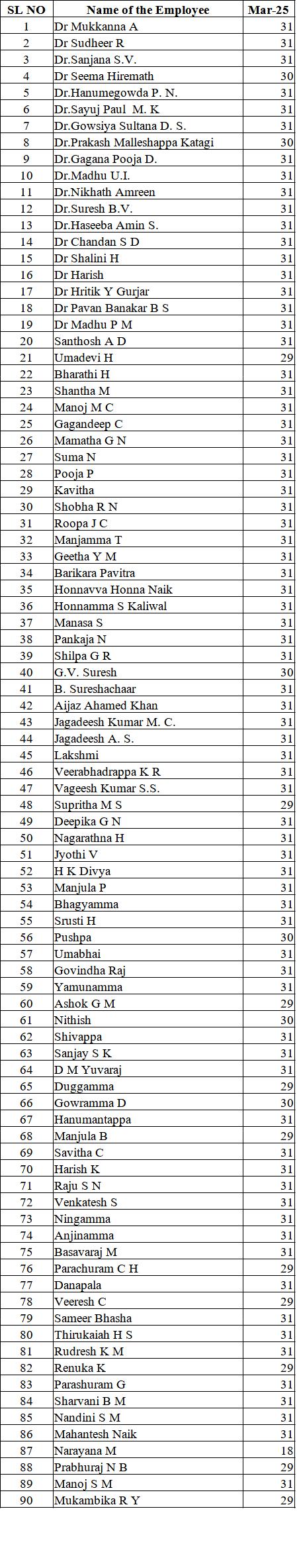 Staff Attendence - March - 2025
