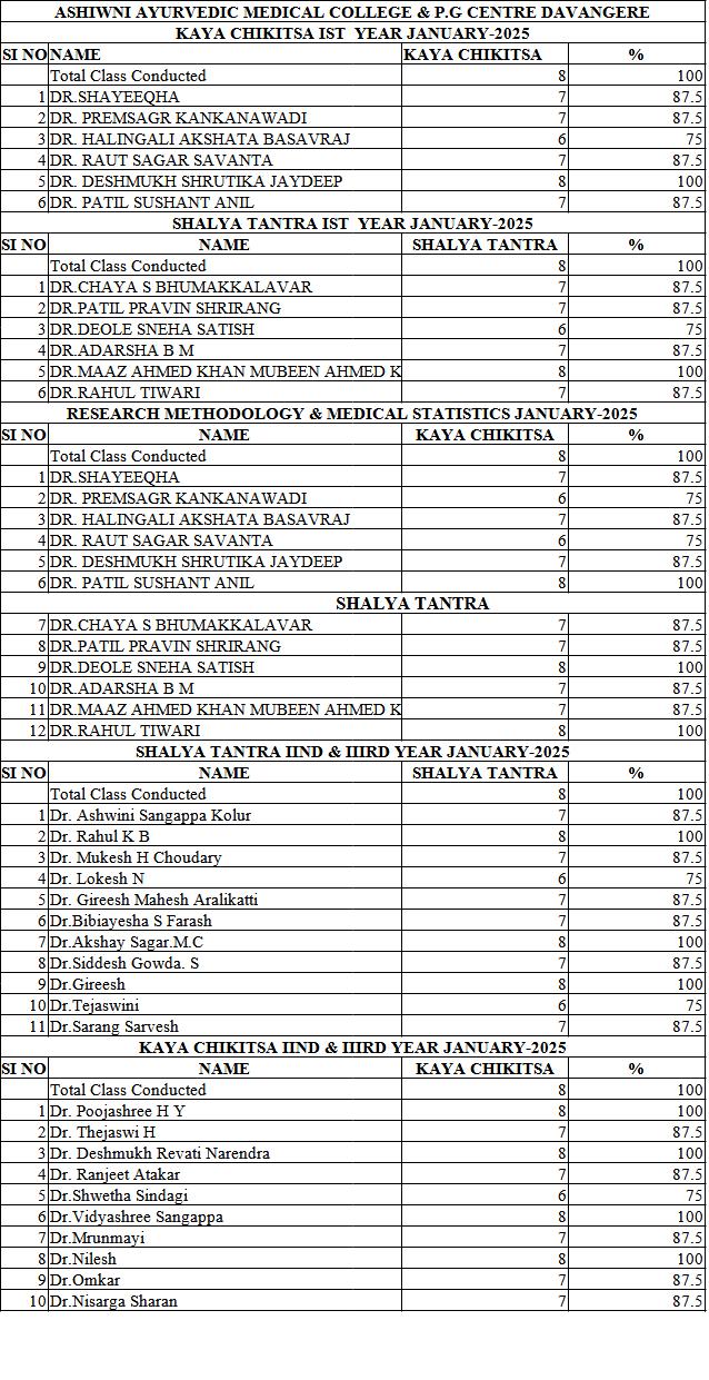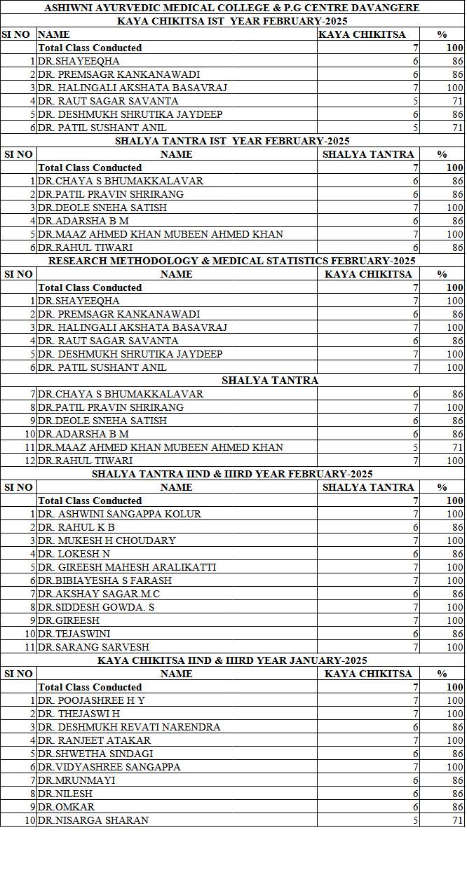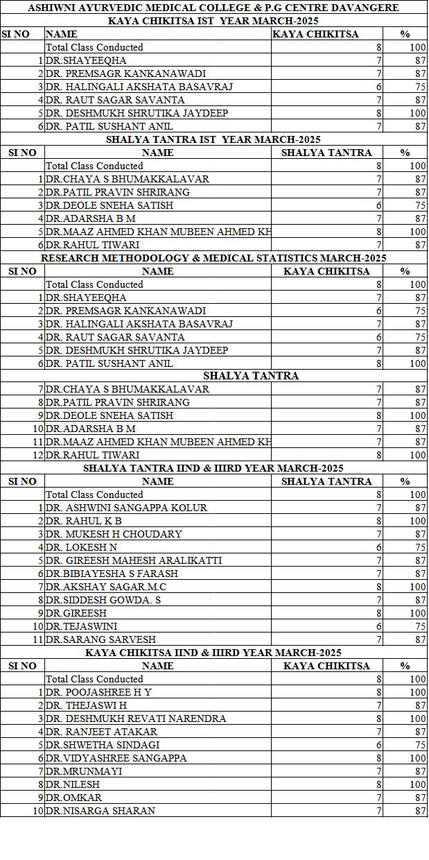 PG Attendance Kaya Chikitsa & Shalya Tantra